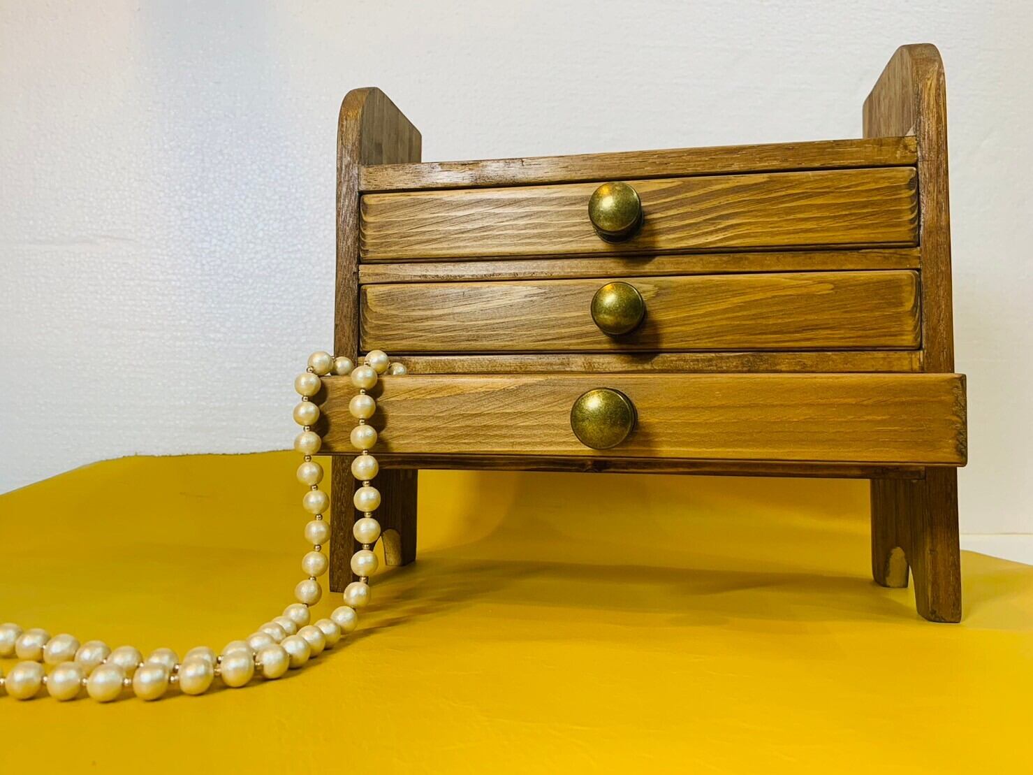 ヴィンテージ風小物入れです。3段引き出しタイプになっていてジュエリーボックスやちょっとした裁縫道具入れにピッタリです。